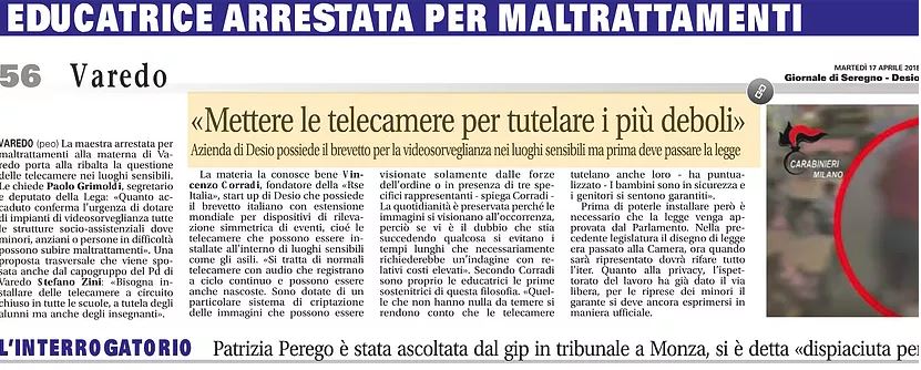 Intervista a Vincenzo Corradi nel programma Primo Mattino su Radio Monte Carlo sul tema della sicurezza negli Asili e nelle Case di Cura con la possibile soluzione agli attuali impedimenti all'uso di telecamere grazie all'adozione della Tecnologia RSe.